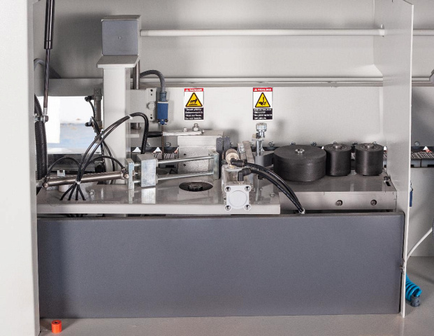 ![]() | Панель управления Управление станком осуществляется с помощью пульта.Пульт управления отображает настройки и рабочие параметры.Простое и понятное включение всех узлов станка.Отображение и настройка температуры клеевой ванны. |