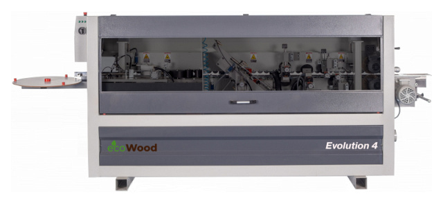 Автоматический кромкооблицовочный станок EcoWood Evolution 4 предназначен для облицовывания рулонного кромочного материала к торцам щитовых деталей при помощи клей-расплава.