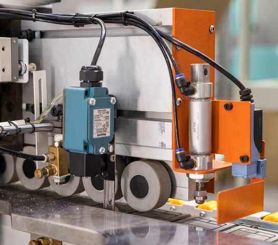 ![]() | Пресс группа со скребками Сервопривод Состоит из одного приводного ролика Ø 100 мм, двух прижимных роликов со скребком Ø 65 мм и одного прижимного полиуретанового ролика Ø 65 мм, которые обеспечивают надежную фиксацию кромочного материала на торец заготовки.Регулировка площадки прижимной группы на толщину кромочного материала осуществляется с пульта управления за счет сервопривода.Каждый ролик оснащен индивидуальным пневмоцилиндром.Прижимные ролики подходят для прижатия кромочного материала различной толщины на торец заготовки для минимизации клеевого шва. |
