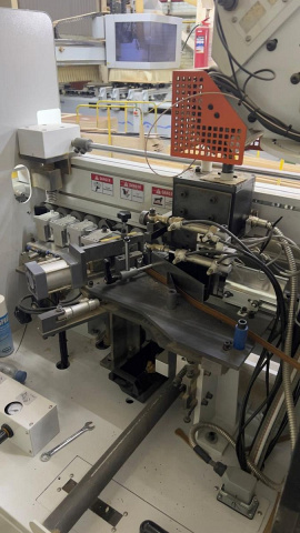 ![]() | Узел предварительного фрезерования Предназначен для устранения дефектов раскроя (микросколов, ступеньки от подрезной пилы), гарантирует перпендикулярную и прямолинейную геометрию поверхности торца детали. Две фрезы с алмазными напайками: Ø 100 x 30 H65 L/R. Автоматический обдув торца заготовки от стружки. Два двигателя противоположного вращение с автоматическим подводом/отводом в зону обработки с помощью пневмоцилиндров дополнительно оснащенных цифровыми счетчиками для более удобной регулировки: Регулировка по высоте, позволяет максимально использовать весь ресурс инструмента. Весь узел установлен в отдельном полностью закрытом пылезащитным кожухом. |