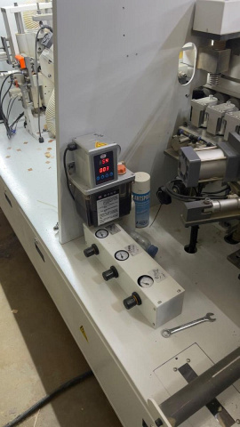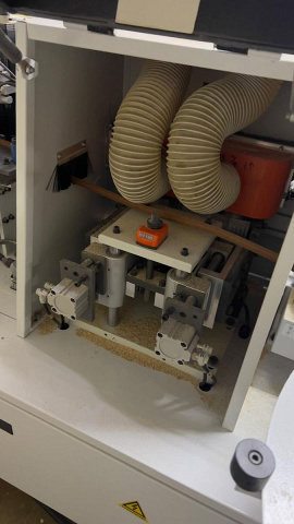 ![]() | Пресс группа со скребками Состоит из одного подающего ролика большого диаметра Ø 100 мм и трех до прессовочных Ø 65 мм роликов обеспечивая надежную фиксацию кромочного материала на торец заготовки.Регулировка площадки прижимной группы на толщину кромочного материала осуществляется с помощью цифрового счетчика.Каждый ролик оснащен индивидуальным пневмоцилиндром.Прижимные ролики подходят для прижатия кромочного материала различной толщины на торец заготовки для минимизации клеевого шва. |