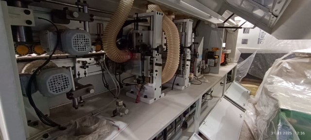 ![]() | Фрезерование свесов Служит для фрезерования верхних и нижних свесов заготовки.Профессиональное исполнение узла представляет собой единый конструктив, в котором установлены двигатели для слаженной и качественной обработки.Круглые копиры большого диаметра для абсолютно точного отслеживания материала.Перенастройка на толщину кромочного материала с помощью счетчиков.На каждом двигателе установлены фрезы.На каждом двигателе установлен отдельный патрубок аспирации.Система аспирации эффективно убирает стружку из зоны обработки.Узел фрезерования свесов с 2 двигателями:Мощность: 0,75 кВт;Частота: 200 Гц;Скорость вращения: 18 000 об/мин. Узел фрезерования свесов с 2 двигателями: |