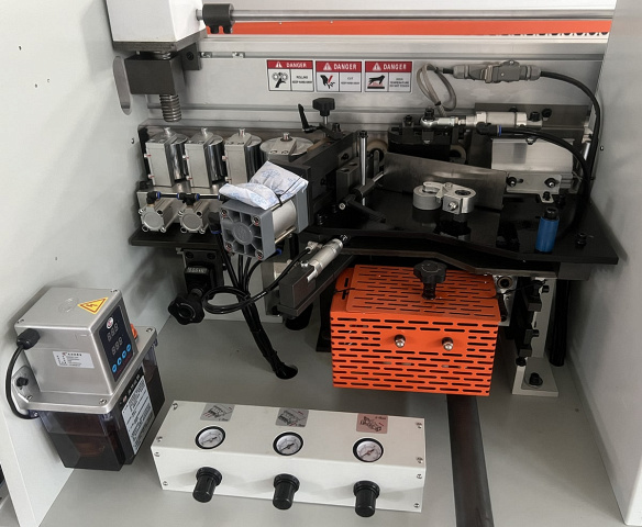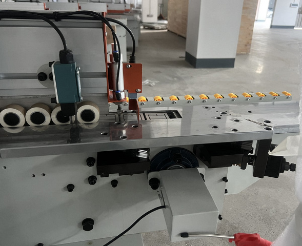 ![]() | Пресс группа Состоит из одного подающего ролика большого диаметра Ø 100 мм и трех до прессовочных Ø 65 мм роликов, которые обеспечивая надежную фиксацию кромочного материала на торец заготовки.Регулировка площадки прижимной группы на толщину кромочного материала осуществляется с помощью цифрового счетчика.Каждый ролик оснащен индивидуальным пневмоцилиндром.Прижимные ролики подходят для прижатия кромочного материала различной толщины на торец заготовки для минимизации клеевого шва. |