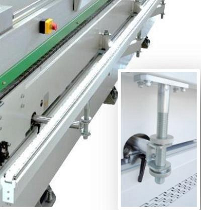 ![]() | Конвейер Круглая направляющая конвейера закалена и имеет высокую твердость и износостойкость. Основание башмака конвейера примыкает к направляющей практически без зазоров, гарантируя плавность и ровность хода. Посадочное место для направляющей фрезеруется на прецизионных станках с ЧПУ, поэтому её срок службы практически не ограничен.Поддерживающая телескопическая опора с роликами выдвигается до 600 мм и позволяет обрабатывать детали с большим свес Nanxing NB7PCGом.Направляющая линейка изготовлена из стальной пластины большой толщины. Крепление к станине с помощью массивного, жесткого кронштейна для обеспечения стабильности позиционирования заготовки.Мощный двигатель с редуктором гарантирует плавную и ровную подачу тяжелых и длинных деталей. Стабильная работа узла подачи обеспечивается системой плавного пуска и электротормоза двигателя в случае аварийной остановки. |