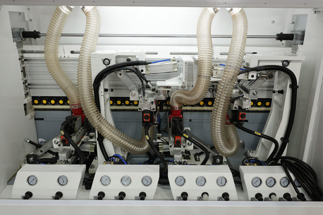 Кромкооблицовочный станок NB8PCHG-PC предназначен для облицовывания прямолинейных кромок плитных материалов рулонными кромками АБС, ПВХ и полосовым кромочным материалом толщиной до 3 мм.