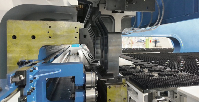Панелегиб имеет два комплекта гибочного инструмента: верхний и нижний, которые могут реализовать гибку сположительнымиотрицательнымуглом, радиусный гиб и прижимной модуль с автоматической регулировкой длины прижима, обеспечивающий и эффективное и точную гибку заготовок сложного сечения.
