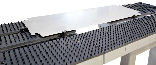 Рабочий стол со встроенными стальными шариками и щетиной для уменьшения сопротивления перемещению и исключающий повреждение поверхности.
