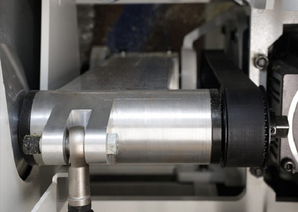 Установлен сервомотор привода подачи на подающий транспортер + ролики, мощностью 5,5 кВт. Быстрая и равномерная подача заготовок в зону резания с высокой точностью.