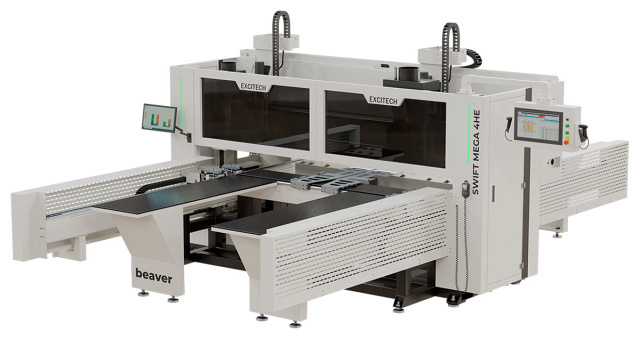 Beaver SWIFT MEGA 4HE - это современный высокопроизводительный четырёхголовый сверлильно-присадочной центр с ЧПУ, предназначен для высокоточного сверления сквозных и глухих отверстий в торцах и плоскостях мебельных щитов с 6 сторон, а также выборки пазов при помощи пазовальных пил и фрезерной обработки с помощью четырёх фрезерных агрегатов (2 сверху + 2 снизу). Центр обеспечивает сверление всех карт присадки за одну установку детали, а также имеет две независимые рабочие зоны и поддерживает одновременную пакетную обработку двух деталей.