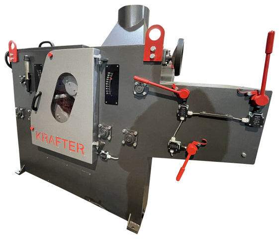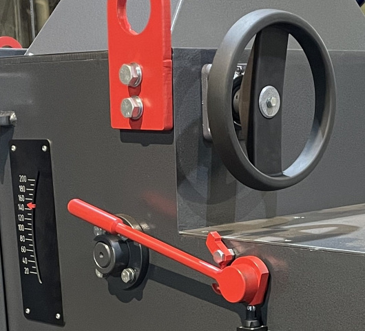 ![]() | Механизм регулировки высоты верхних подающих вальцов Два верхних подающих вальца осуществляют прижим бруса собственным вес KRAFTER M/DOUBLEом и прижимными пружинами. Регулировка высоты верхних подающих вальцов осуществляется вручную с помощью маховика. |