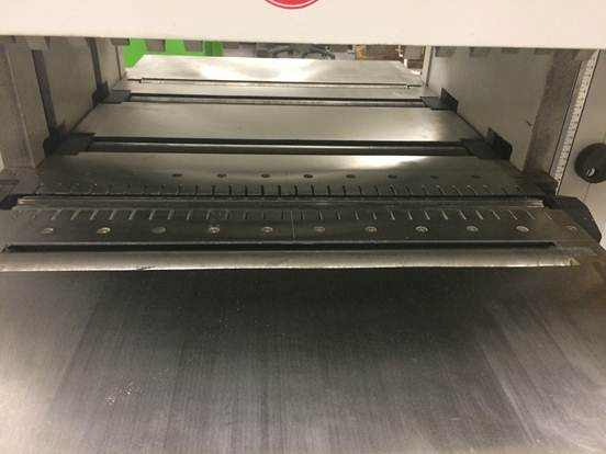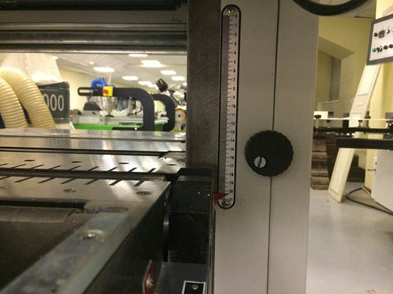 ![]() | Нижний (фуговальный) ножевой вал Привод нижнего ножевого вала осуществляется от отдельного двигателя. Настройка глубины съема осуществляется с помощью винта на передней части стола. Отображение размера по миллиметровой шкале. |