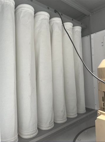 Блок рукавный фильтров из полиэстера. Минимальная фракция улавливаемой пыли до 3 мкм. Рукавные фильтры установлены в подвижном каркасе.