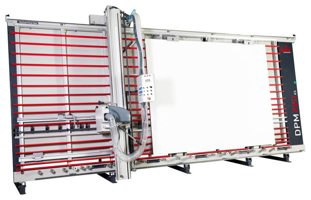 Вертикальная компоновка дает возможность выдерживать точную геометрию пропила, благодаря перемещению пильного узла вместо перемещения заготовки.