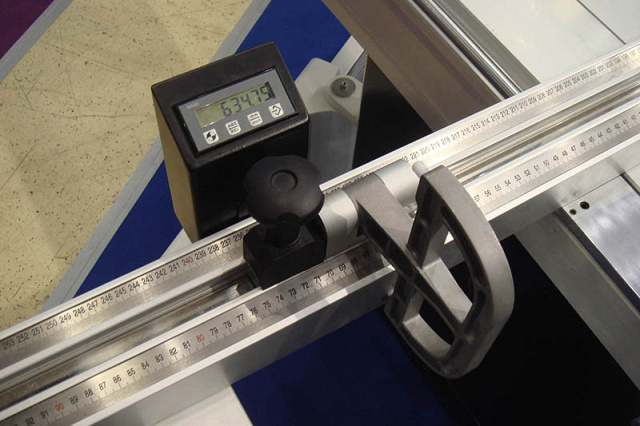 Поперечная линейка оснащена двумя массивными перекидными флажками. В базовой комплектации один из флажков имеет электронный цифровой дисплей указания размера.