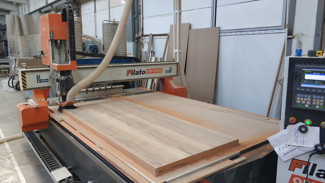 Криволинейный и прямолинейный раскрой фанеры, ДСП, МДФ, в том числе панелей облицованных шпоном. Изготовление различных мебельных фасадов с художественной резьбой, накладок на мебель, столешниц для кухонной мебели, элементов мебели из массива (стулья, столы, тумбы, шкафы).