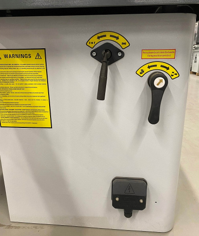 ![]() | Фиксация шпинделя На боковой панели станка расположены рукоятки блокировки шпинделя. Правая рукоятка для стопора шпинделя при смене инструмента. Левая рукоятка для фиксации шпинделя после подъема/опускания. |