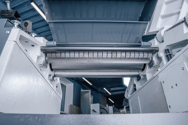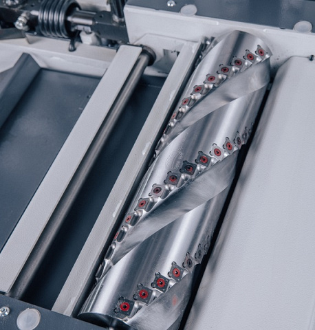 ![]() | Вальцы подачи Подача заготовки при помощи рифленого вала с косыми насечками. На выходе гладкий стальной вал. Когтевая защита предотвращает выброс заготовки. |
