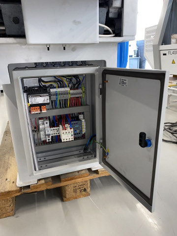 ![]() | Пульт управления Удобно вынесенный над станком. На нем расположены кнопки включения, аварийной остановки, подъема/опускания стола и электронная индикация толщины съема. |