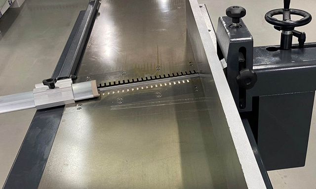 ![]() | Регулировка линейки Направляющая линейка удобно настраивается маховиком через передачу шестерня-рейка. |