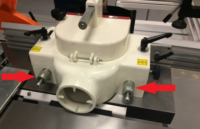 ![]() | Регулировка направляющих линеек фрезерного узла Осуществляется с помощью рукояток и необходима для регулировки глубины фрезерования. Настраивается как подающая, так и принимающая линейка. |