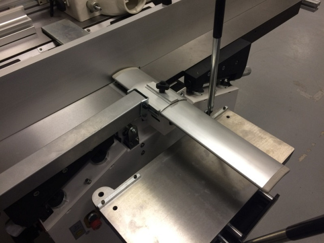 ![]() | Телескопическаяч линейка На линейке 2 флажковых упора. Поворот линейки от 0 до 45°. Телескопическое удлинение позволяет базировать габаритные заготовки. Форматный стол на SICAR C400 имеет усиленное крепление в 3-х точках к телескопической опоре. |