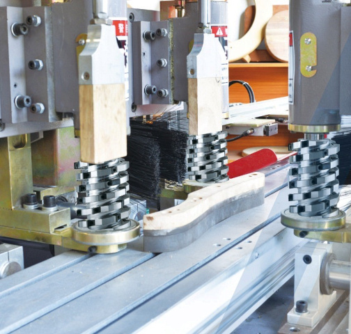 Фрезерные узлы одновременно обрабатывают заготовку с двух сторон, копируя форму шаблона.