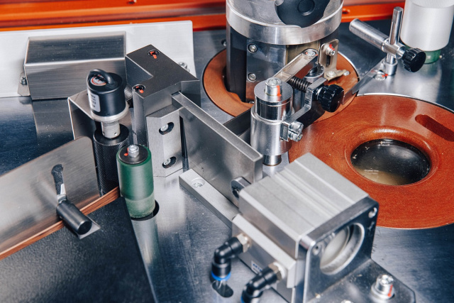 Подача кромочного материала в зону приклеивания осуществляется автоматически из магазина.