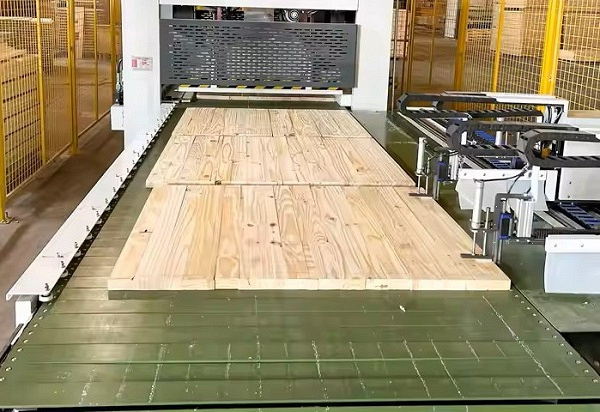 ![]() | Автоматическая выгрузка щита Приводной стол на выходе из зоны прессования с поперечным сбросом готового щита в буферную зону готовых изделий. |