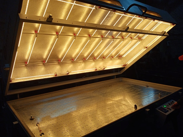 В комплектации Comfort нагрев осуществляется малогабаритными кварцево-галогеновыми лампами, которые за счёт небольшой мощности позволяют смонтировать их близко друг к другу, что обеспечивает быстрый и равномерный разогрев пленки. В комплектации Standart используются более длинные лампы КГТ мозностью по 1000 Вт.