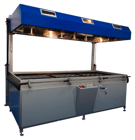 Станок оснащен 40 / 50 / 60 лампами КГТ по 600 Вт, в зависимости от размера стола.