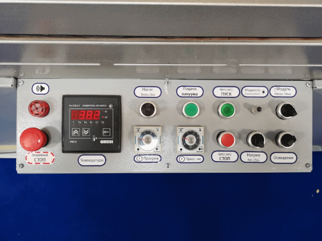 В системе управления нагревом используется модуль с обратной связью и цифровой индикацией температуры который позволяет плавно изменять мощность нагрева, что исключает неравномерность прогрева пленки и частый выход из строя нагревательных ламп.
