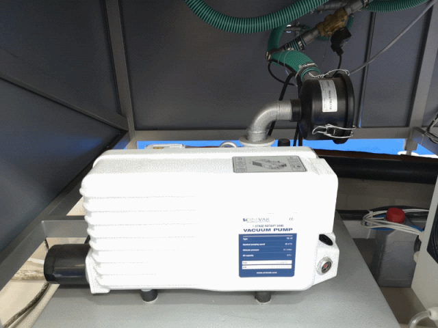 Пластинчато-роторный вакуумный насос производительностью 40 м³/час обеспечивает прессование с коэффициентом вакуума до 0,95.