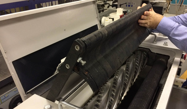 Надежный привод ножевого вала от главного электрического двигателя мощностью 15 кВт через 3 клиновых ремня.