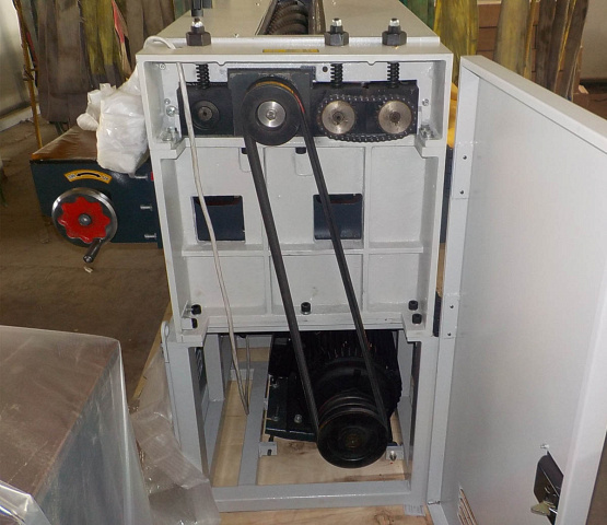 Привод роликов подачи осуществляется через мощную цепную передачу от отдельного двигателя мощностью 3 кВт.