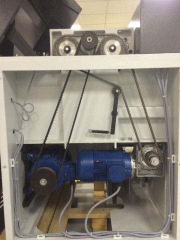 ![]() | Привод роликов подачи Осуществляется от отдельного двигателя через редуктор посредством цепи. Натяжение ремня привода ножевого вала осуществляется с задней части станка. |