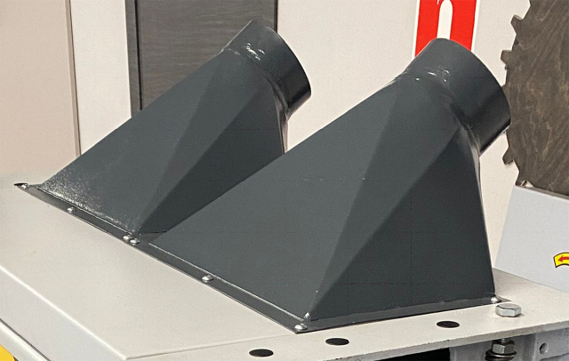 ![]() | Аспирация Выброс стружки осуществляется через 2 круглых аспирационных патрубка диаметром 120 мм. |