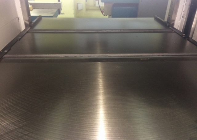 Перемещение стола по 4-м массивным призматическим направляющим исключающих перекос.
