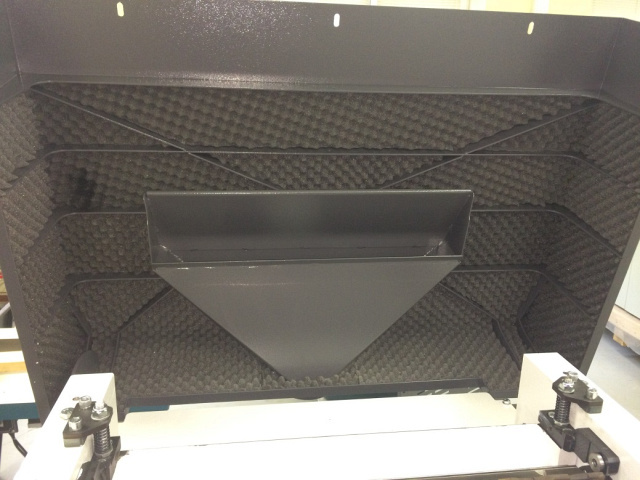 Откидная система верхней крышки обеспечивает легкий доступ к ножевому валу (например, при замене ножей). Шумоизоляция кожуха обеспечивает снижение шума при работе. При открытой крышке срабатывает концевик, что исключает возможность включения станка – норматив СЕ.