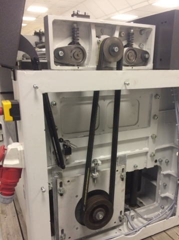 OSTERMANN DMS 63W  Привод ножевого вала  Осуществляется от двигателя мощностью 9,5 кВт посредством зубчатой ременной передачи через 3 ремня  Зубчатая ременная передача обеспечивает высокий показатель КПД, обладает повышенным ресурсом эксплуатации,...Привод ножевого вала