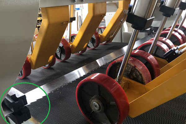 ![]() | Система прижима заготовки на выходе Состоит из 3-х сдвоенных роликов. За счет установки прижимов заготовки и на входе и на выходе, достигается высокая точность получаемых изделий. Каждый ролик имеет свой пневмо-прижим. Давление каждого прижима возможно регулировать в зависимости от обрабатываемого материала. |