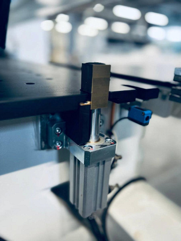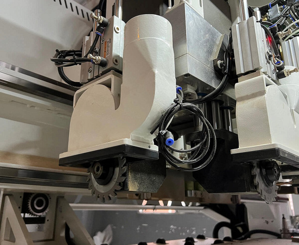 ![]() | Системы прижимов деталей при обработке Боковой прижим с роликами используется для перемещения заготовок в горизонтальной плоскости. Перемещение осуществляется с помощью шестерни и рейки. В соответствии с параметрами детали, настраивается на определенную ширину, исключая любые смещения деталей. Вертикальные независимые пневматические прижимы (пластины и ролики) надежно фиксируют деталь во время обработки. Если во время обработки происходит движение детали (торцевое сверление, выборка паза, фрезерная обработка) – используются пневматические роликовые прижимы. |