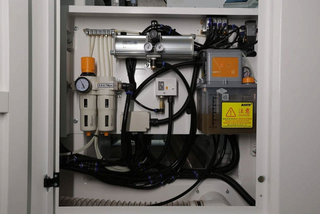![]() | Система подготовки сжатого воздуха и автоматическая система смазки Система подготовки сжатого воздуха Станок оснащен специальной системой «выравнивания» давления воздуха в системе, что позволяет производить работу без остановок, в случае просадки общего давления в магистрали. В комплекте так же идет ресивер. Автоматическая централизованная система смазки Автоматическая смазка основных элементов перемещения и направляющих значительно продлевает срок их службы, исключает человеческий фактор и необходимость для оператора производить процедуры смазки вручную. Система обратных клапанов позволяет удерживать смазку в трубках на определенном уровне, чтобы смазка гарантированно дошла до каждого элемента, при каждом цикле. |