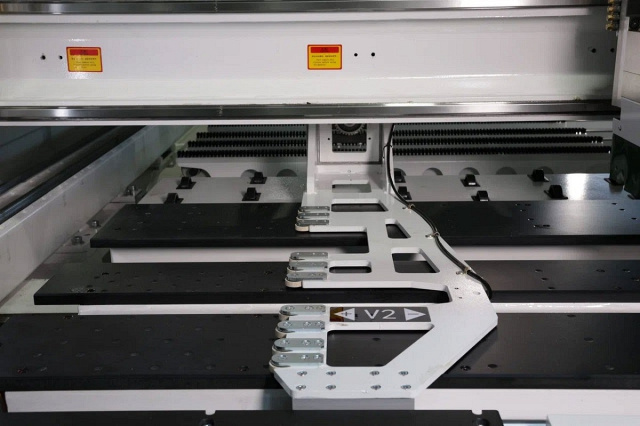 ![]() | Зажимы Два независимых зажима развивают максимальную скоростью перемещения до 135 м/мин, при помощи серводвигателей INOVANCE и редукторов SHIMPO-NIDEC, которые позволяют производить обработку с высочайшей точностью и скоростью. Позиционирование деталей производится при помощи тройного упора на каждом из захватов. Упоры выполнены в виде подшипников, которые предотвращают скалывание по торцу заготовки, при базировании. Функция автоматического обдува кромки (специальные форсунки), позволяет очистить поверхность нижней части захватов и рабочего стола от возможного мусора и пыли. |