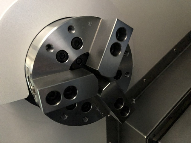 Станок укомплектован гидравлическим 3-х кулачковым патроном с проходным отверстием.