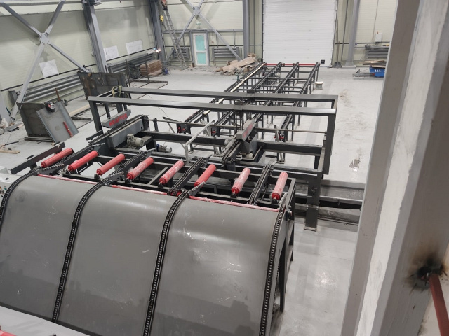 ![]() | Подающий конвейер Подача заготовок происходит при помощи конвейера с одинарной цепью (на первой и последней пиле) и сдвоенной цепью на центральных пилах. Цепь на конвейерах используется усиленная ПР-25.4 с максимальной нагрузкой на разрыв 60 тонн. Данная цепь не вытягивается, а отторцовка заготовки происоходит всегда под прямым углом. Каждый конвейер имеет жесткие упоры для подачи досок. Все упоры выставлены в один уровень, что дает высокое качество и перпендикулярность реза. |
