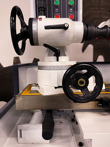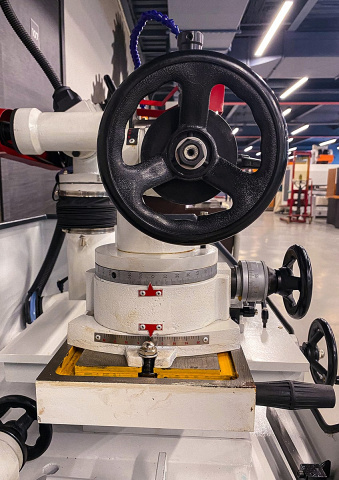 ![]() | Делительная головка Делительная головка оснащена высокоточными насечными лимбами и имеет два типа настройки на угол заточки-дискретную (с фиксированным шагом 15°) и бесступенчатую (по шкале на определенный угол). Оправка для насадных фрез оснащена необходимыми переходными кольцами для всех посадочных диаметров фрез. Задний поддерживающий центр позволяет затачивать тяжелые строгальные головки длиной до 300 мм. Наклон и поворот заточного узла осуществляется по шкале при помощи маховика, что делает удобным процесс настройки станка перед заточкой. |