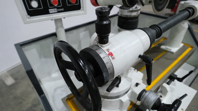 ![]() | Настройка высоты заточного узла Подъем заточного узла осуществляется при мощи маховика за счет передачи винт-гайка, что гарантирует точность настройки станка перед заточкой. Подвижная часть механизма подъема защищена гофрокожухом, предотвращающим попадание абразивной пыли в смазывающие его части. |