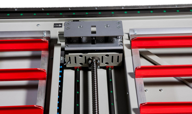 ![]() | Боковой позиционирующий упор Предназначен для автоматического позиционирования листа материала при выполнении вертикальных резов. Точность выставления размеров обеспечивается ЧПУ станка посредством сервомотора. |